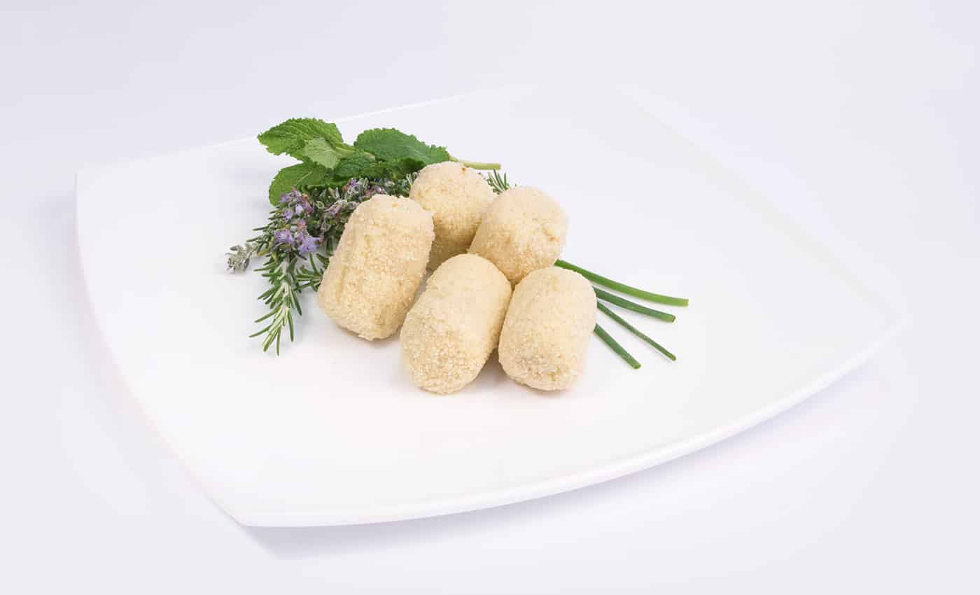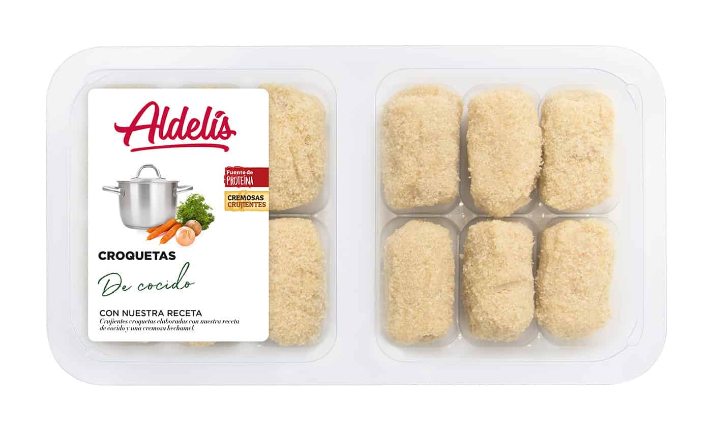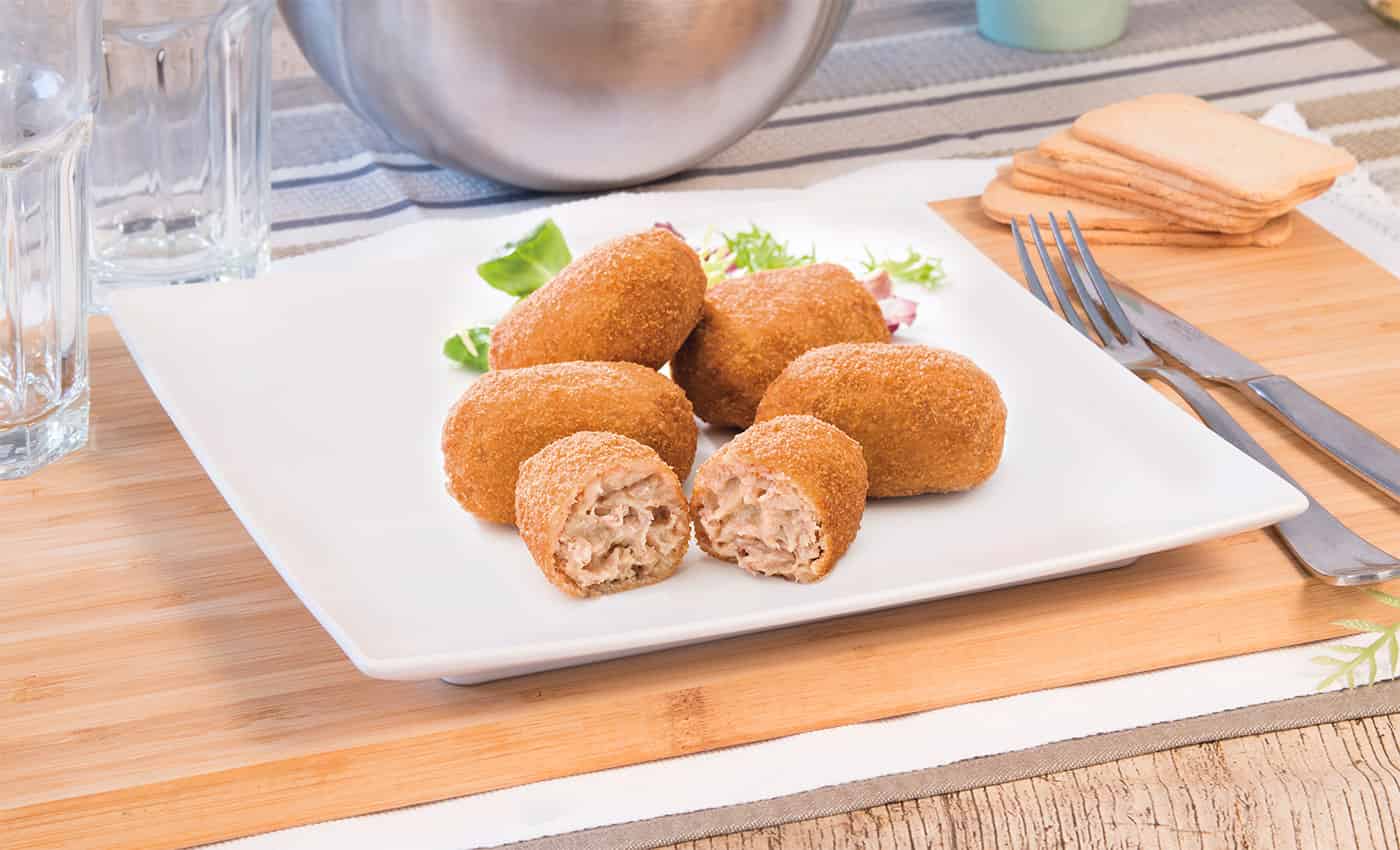 Las Croquetas de Cocido recuperan todo el sabor de la cocina casera. Elaboradas con nuestra receta tradicional de cocido, incorporan carnes seleccionadas y caldo reducido, todo ello ligado con una bechamel suave y cremosa que realza su sabor. Su rebozado dorado y crujiente completa un bocado lleno de autenticidad y carácter.