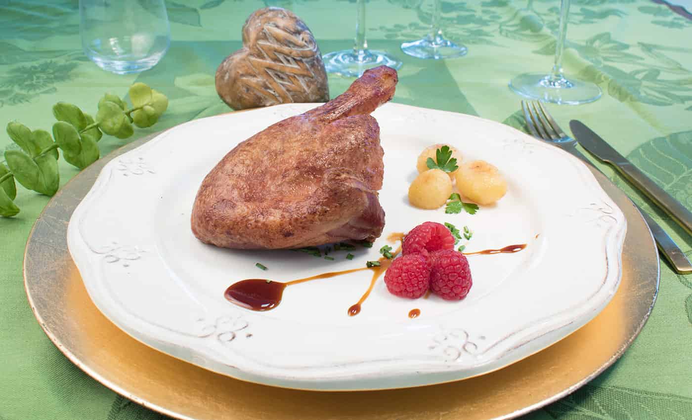 Cocinado a fuego lento, le damos nuestro toque a la receta clásica del confit: Pato cocinado a baja temperatura en su propia grasa.