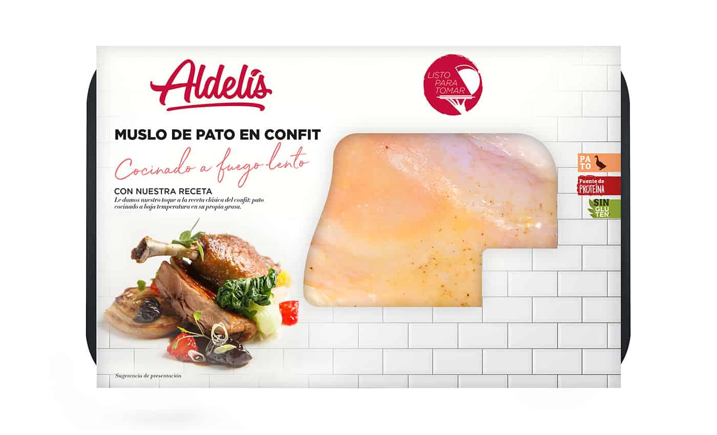 El Muslo de Pato en Confit es un plato principal de alta cocina listo para servir, ideal para ocasiones especiales o menús gourmet. Puede acompañarse con salsas afrutadas o dulces, como reducción de Pedro Ximénez, naranja o frutos rojos, y guarniciones como puré de patatas, peras caramelizadas o compota de manzana. Una combinación perfecta entre tradición, calidad y sabor excepcional.