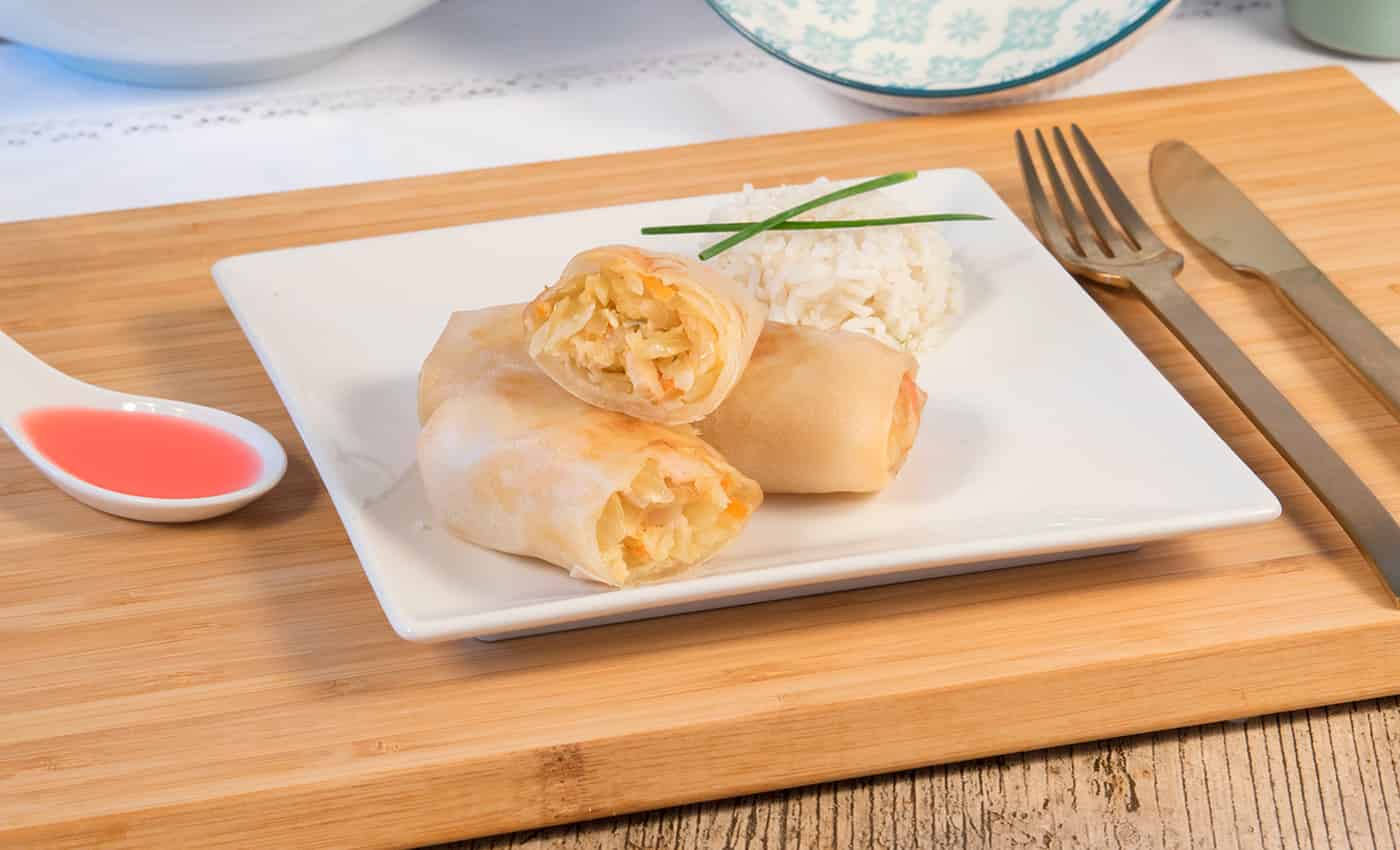 Los Rollitos de Primavera con Pollo son perfectos como entrante o aperitivo, acompañados de una salsa agridulce, de soja o teriyaki. También pueden servirse como guarnición o formar parte de un menú asiático más completo. Su presentación y sabor los convierten en una opción versátil, ligera y muy apetecible tanto para el consumo en casa como en restauración.